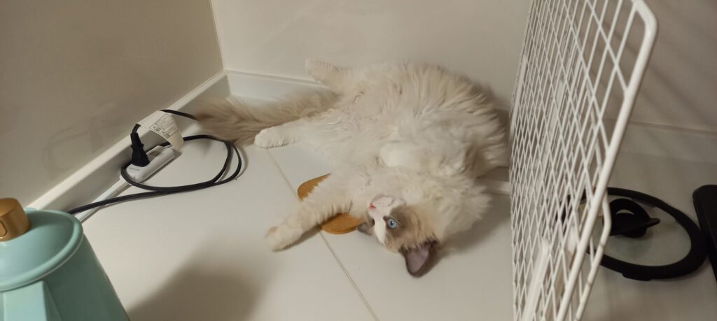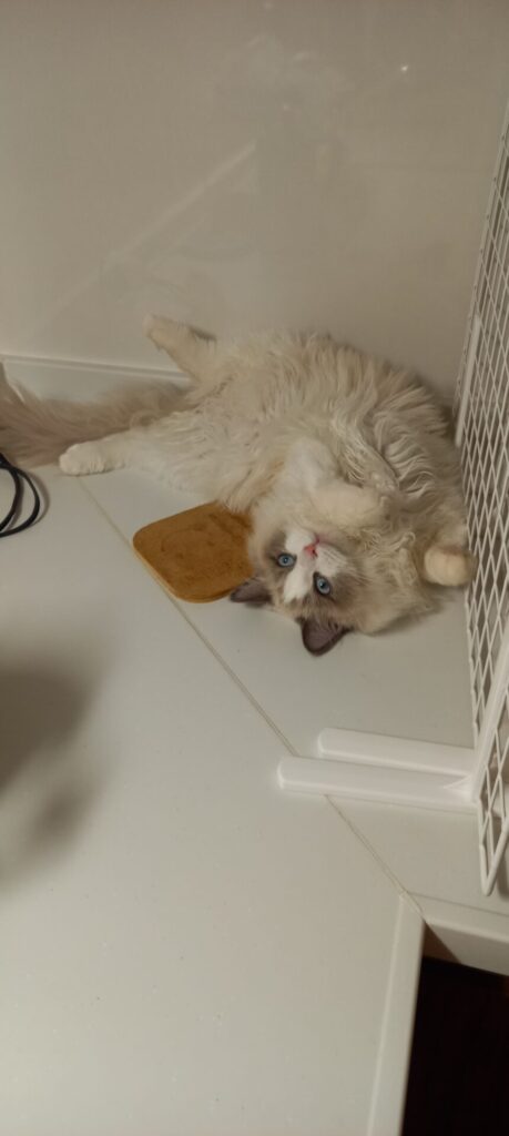写真下側で料理中に近づいてくることもあるけど、だめーーって押し返すと元のポジションに戻っていくw